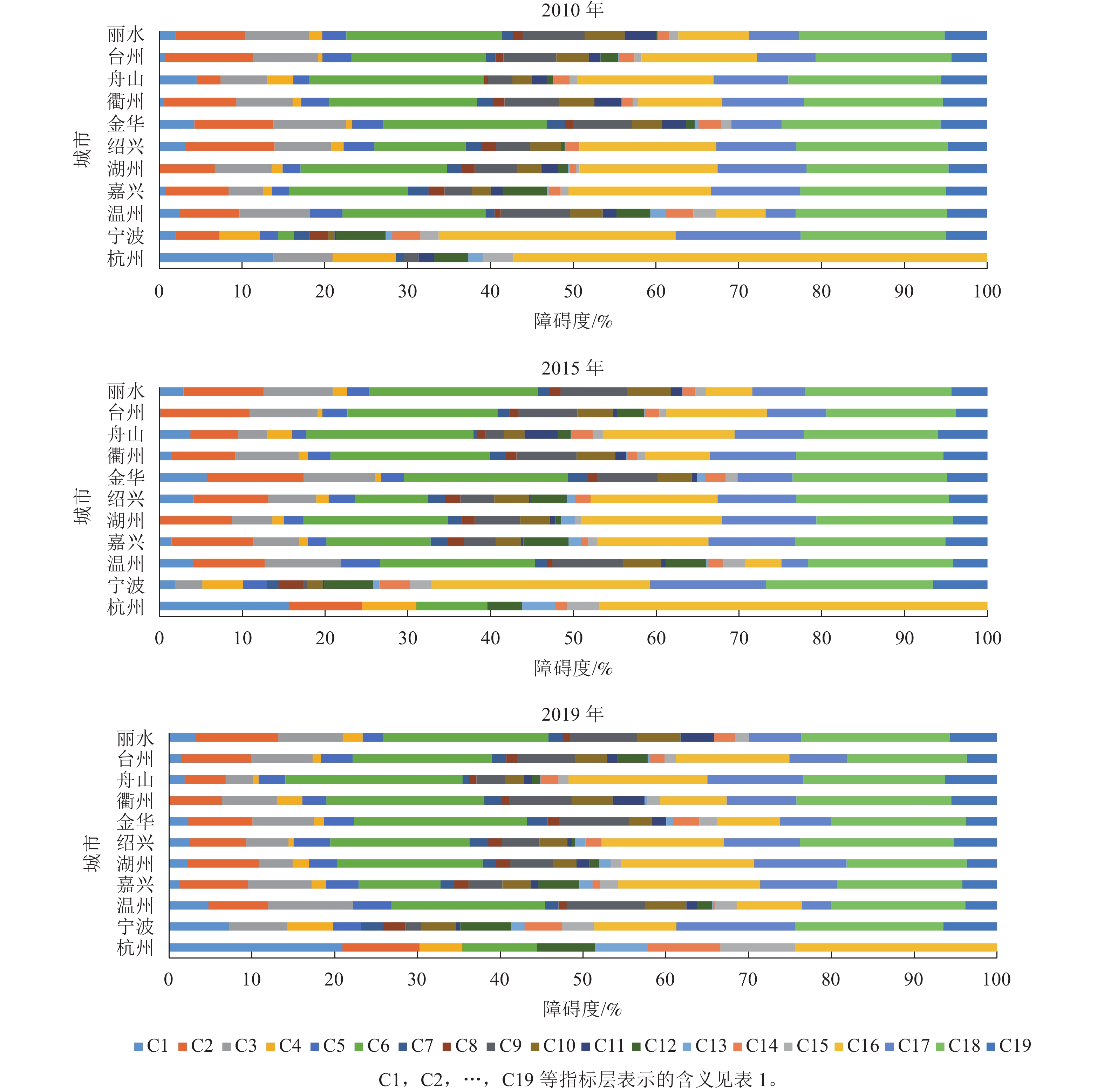 结论浙江省城市发展质量总体呈上升趋势,各城市具有不同的发展优劣势,体现了发展不平衡现状;障碍因子存在明显差异,需要制定差异化发展策略。图2表3参26