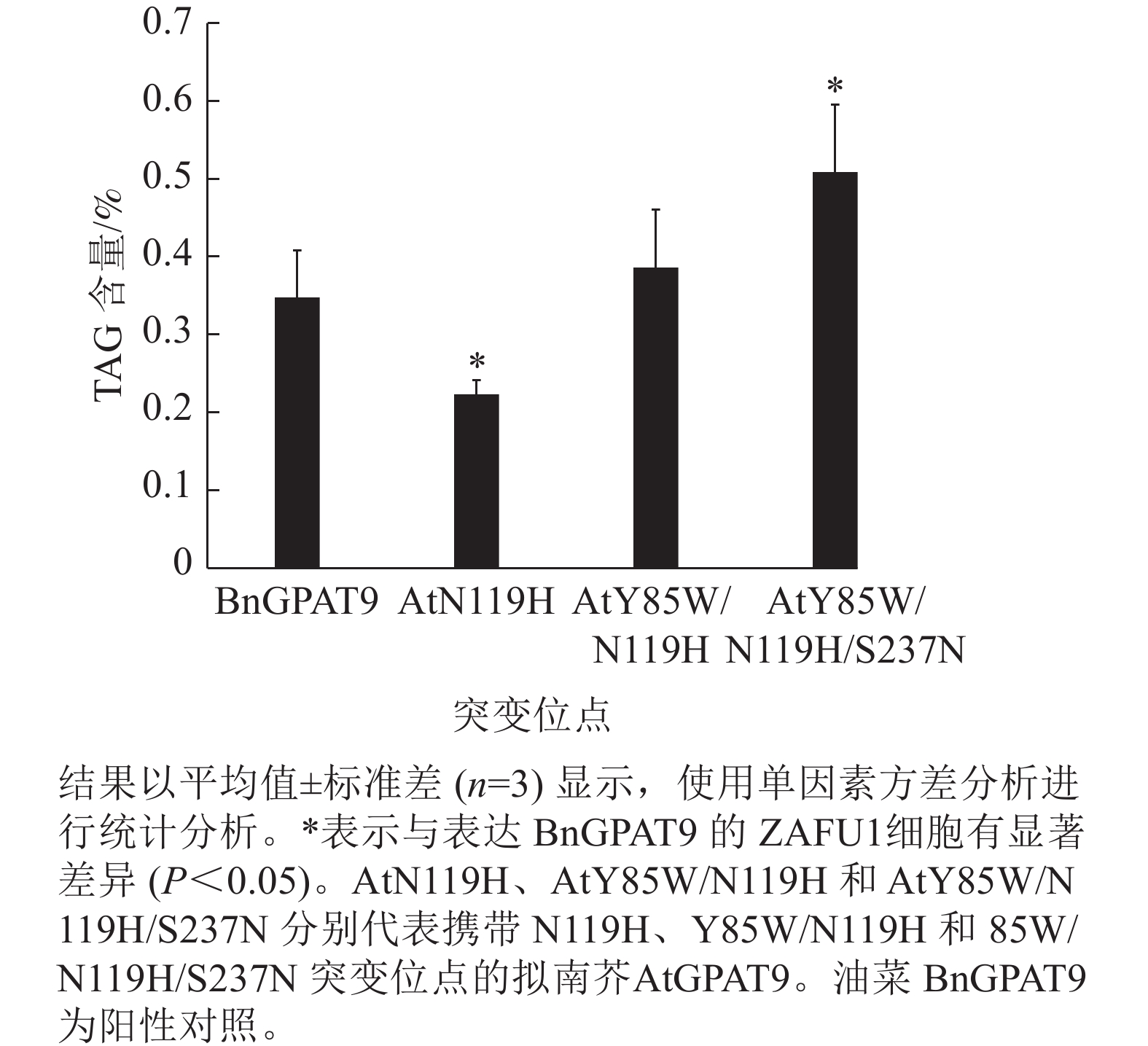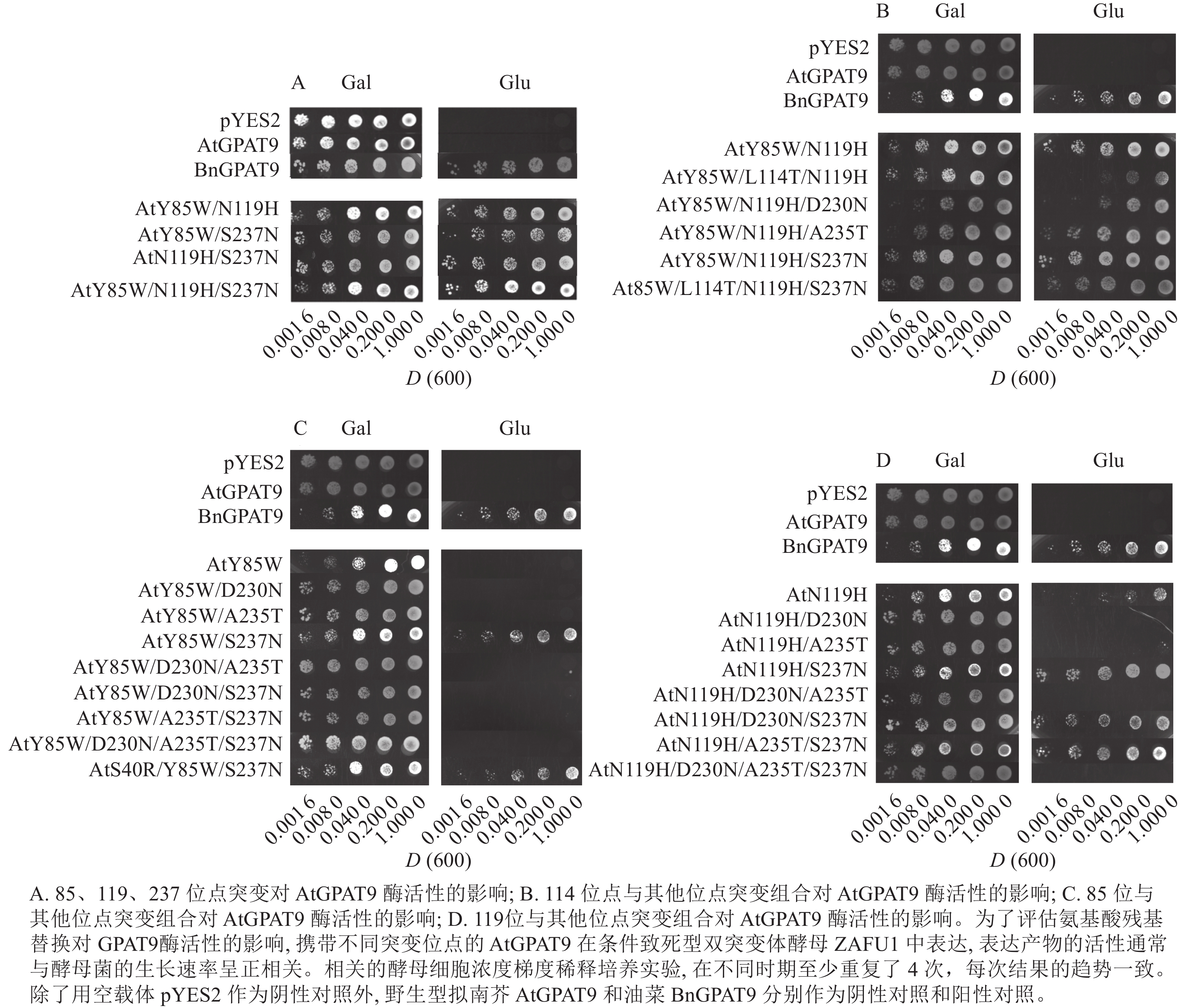 GPAT9突变基因,结合GPAT特异的酵母遗传互补法,剖析单一和多个氨基酸位点改变对GPAT9酶活性的影响。