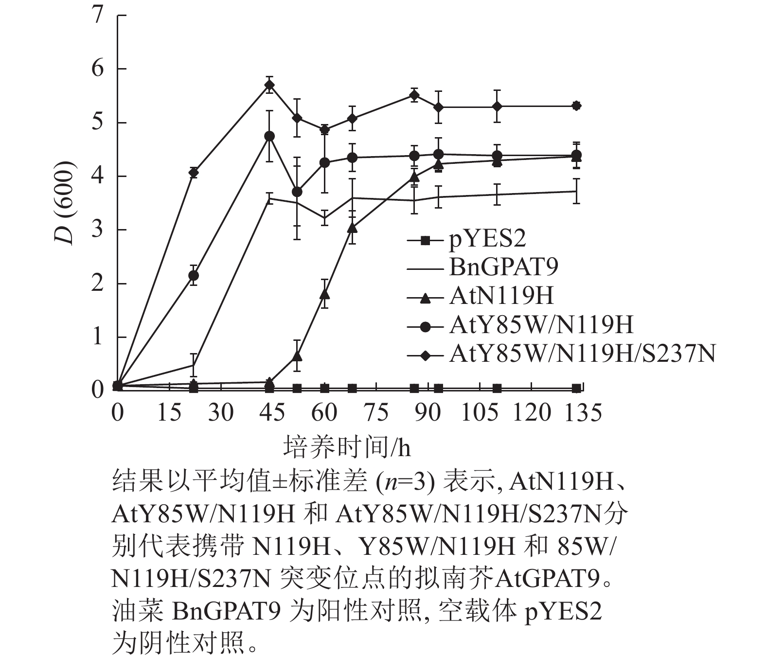 目的3-磷酸甘油酰基转移酶(GPAT)催化三酰甘油(TAG)生物合成途径中的第1步酰化反应,TAG合成能力是油料作物的关键性状,但亦与人类肥胖症密切相关,了解GPAT结构与功能的内在关系对于这一性状的遗传或化学遗传调控至关重要。本研究旨在鉴定调控植物GPAT活性的关键氨基酸位点。