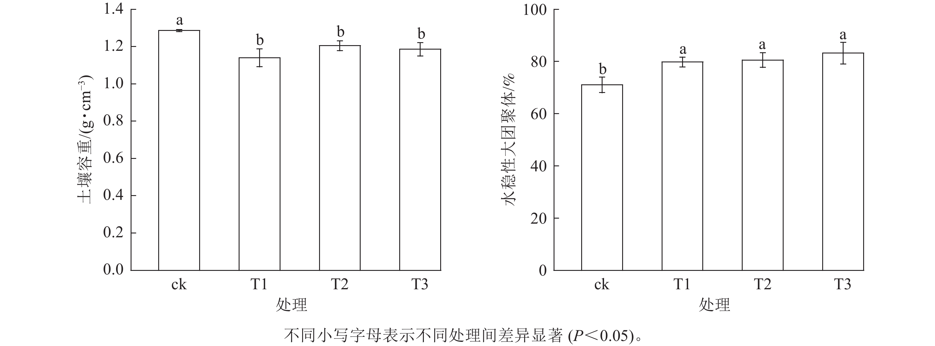 结果与对照相比,稻蛙综合种养模式显著降低土壤容重,显著提高土壤水稳性大团聚体质量分数(