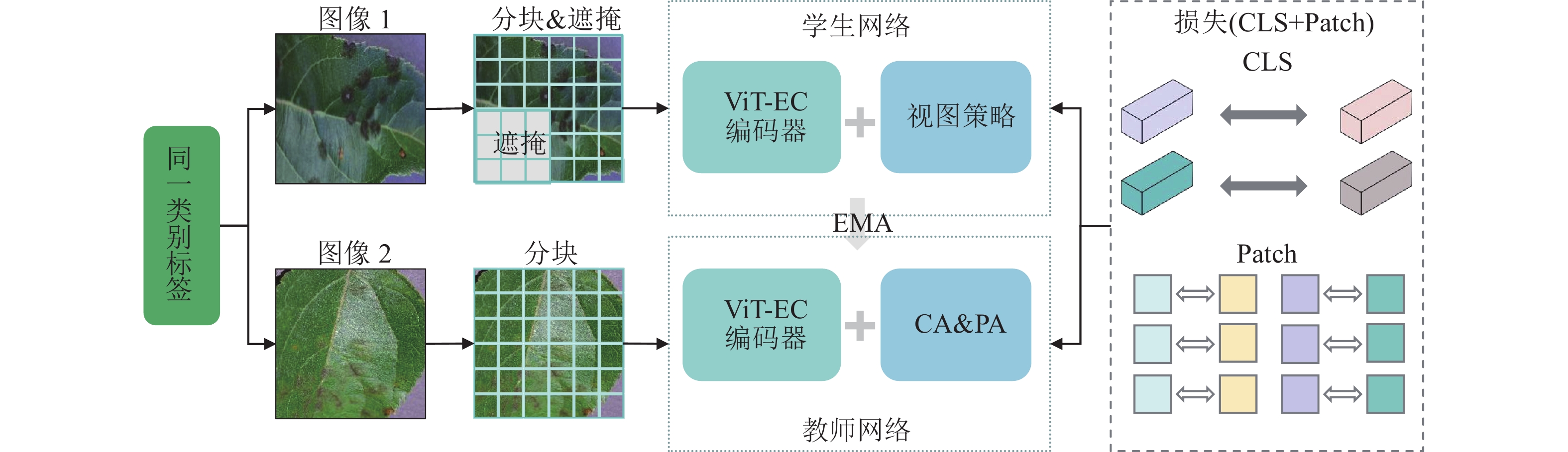 方法本研究提出一种结合小样本转换器和监督式掩码知识蒸馏的增强型上下文感知知识蒸馏框架(ECKD),构建包含教师网络与学生网络的协同结构,并结合全局特征对齐、局部特征对齐和监督式掩码图像建模视图策略,引入通道注意力残差模块和上下文感知模块,设计新型ViT-EC编码器以增强模型的特征提取与语义理解能力。基于PlantVillage数据集,采用原型分类器进行5-way 1-shot和5-way 5-shot的小样本任务评估。