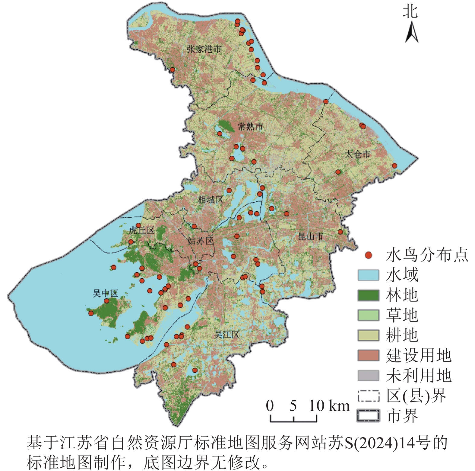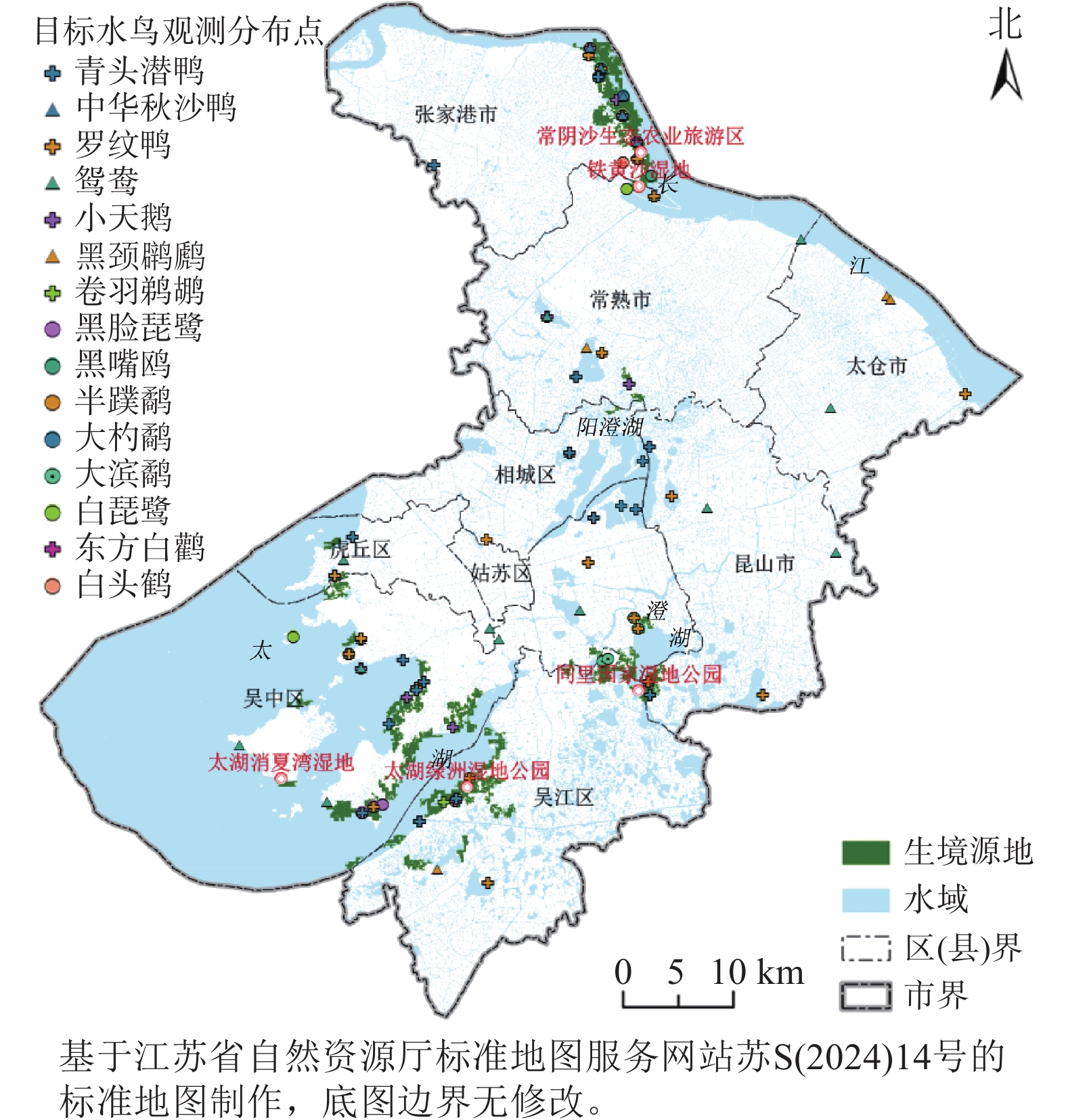 结论研究期间苏州市受胁水鸟生境适宜性良好。探索了生境网络定量构建方法,提出了生境网络优化建议,为地区生物多样性保护及应对地区生境变化提供科学参考。图6表5参38