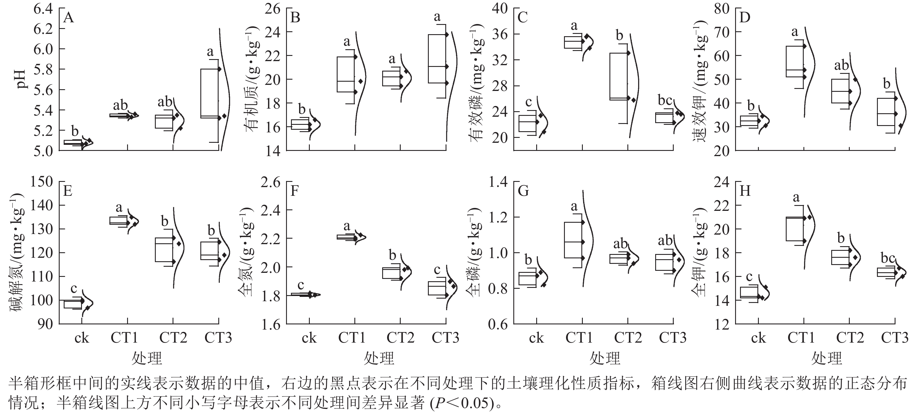 结果①土壤pH、全氮、可溶性有机碳、微生物生物量氮 4 个指标呈现弱变异性,其余指标属于中等强度变异,其中土壤速效钾和可溶性有机氮的变异系数相对较大,说明土壤速效钾和可溶性有机氮对不同生草处理方式的响应较为敏感。②隶属度值绘制的雷达图显示:土壤 pH、碱解氮与速效钾是制约梨园土壤肥力水平的主要因素。③通过加权模型计算的土壤肥力质量综合指数表明:与常规耕作相比,白三叶处理的土壤肥力质量综合指数值最高,生物质炭与紫云英处理次之。④生物质炭处理在改善果实品质方面效果显著(