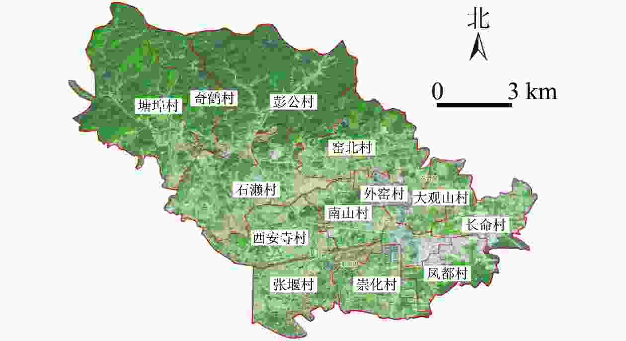 瓶窑镇位于杭州市北郊,距杭州市中心25 km,下辖13个建制村(外窑村、南山村、张堰村、长命村、西安寺村、石濑村、塘埠村、凤都村、大观山村、崇化村、窑北村、彭公村、奇鹤村)和6个社区(图1),总人口5.78万人,总面积128.81 km2。瓶窑境内,人文资源中以良渚文化及其遗址最为突出,苕溪文化、老街文化、南山文化、民俗文化等多元文化是对良渚文化内涵的丰富和延展,除了有以物质形态为主的“有形”文化遗产,还有非物质文化遗产,如余杭纸伞、风筝制作技艺等。瓶窑镇处于天目山系的末端,宏观构造特征大体可分为西部山地丘陵区和东部平原区,境内地势由北向南倾斜,以东苕溪为界,西部为山地丘陵河谷,东部为水网平原。镇境西北属天目山东麓山脉之余脉。因苕溪而成的河谷平原分布在南、中、北3条苕溪谷口至东苕溪一带,低河漫滩,地势起伏,自然资源丰富。在良渚遗址申遗成功和全域旅游发展的背景下,旅游资源的快速开发使瓶窑镇的乡村景观发展面临极大的机遇和挑战。