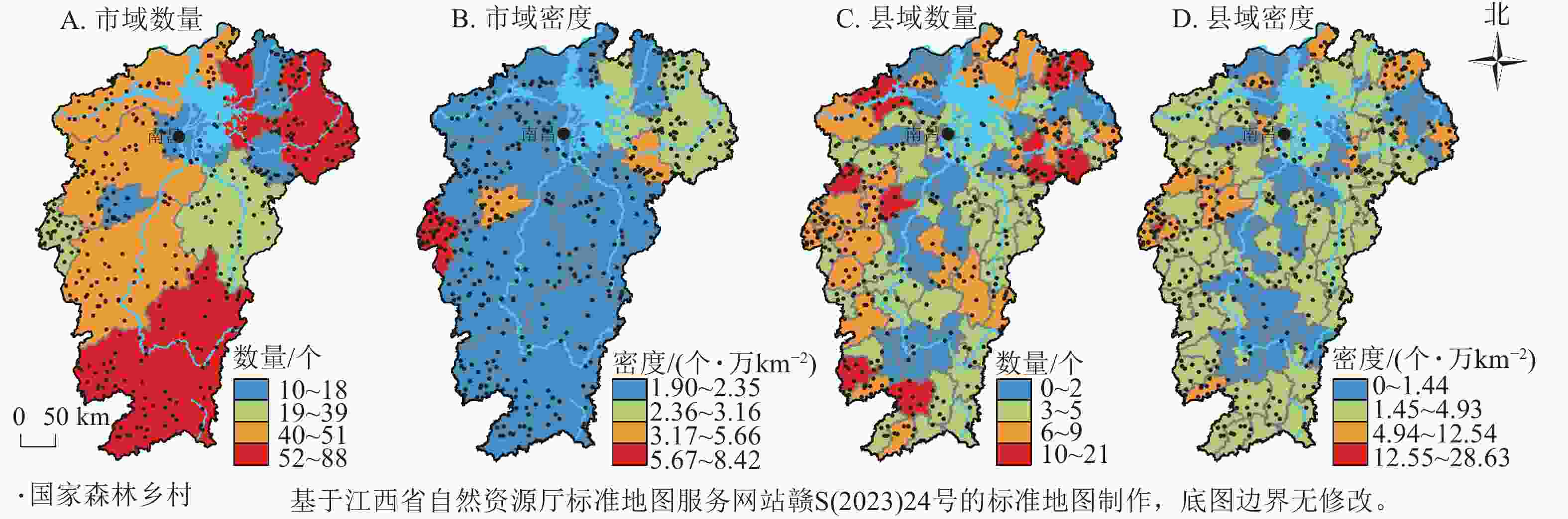 图 1江西省国家森林乡村市域、县域尺度数量及密度分级图