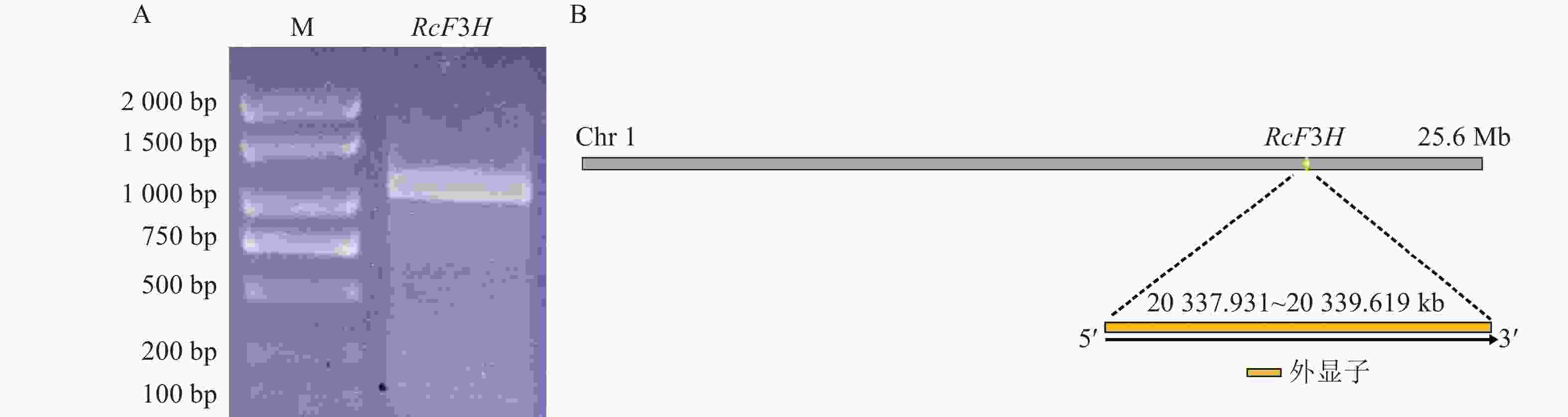 掌叶覆盆子Rubus chingii是中国特色的药食同源植物,也是浙江省新“浙八味”之一,具有补肝益肾、固精缩尿等功效[15]。相关研究表明掌叶覆盆子富含20多种黄酮类活性成分,具有抗菌抗炎等多种药理活性[16−17]。然而掌叶覆盆子类黄酮生物合成及转录调控机制尚不清晰。本研究克隆得到1个掌叶覆盆子类黄酮生物合成途径关键酶基因RcF3H的全长序列,并对其进行生物信息学分析,同时利用转录组和实时荧光定量PCR (RT-qPCR)技术分析RcF3H基因在不同组织、果实发育期以及MeJA刺激下的表达特征,为后期解析RcF3H对掌叶覆盆子类黄酮代谢的调控机制提供参考。