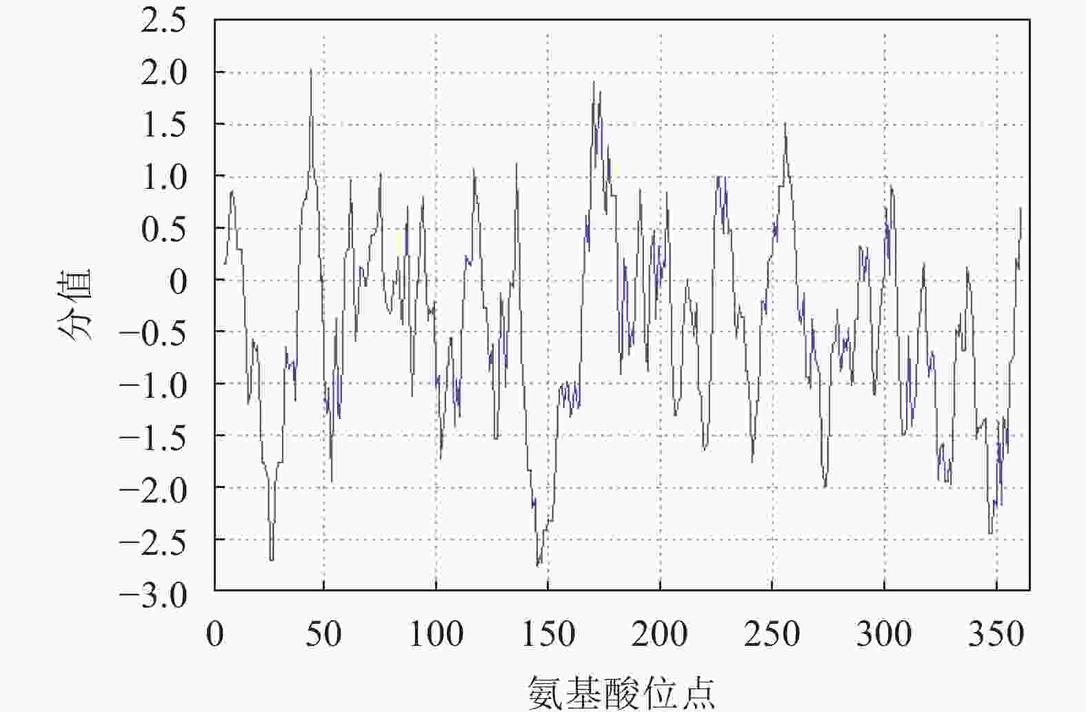蛋白亲疏水性分析表明:RcF3H蛋白属于亲水性蛋白;蛋白平均亲水指数为−0.448,大部分区域表现出亲水性,最大疏水分值(−2.756)位于肽链第145位氨基酸,最大亲水分值(2.022)位于肽链第44位氨基酸(图3)。