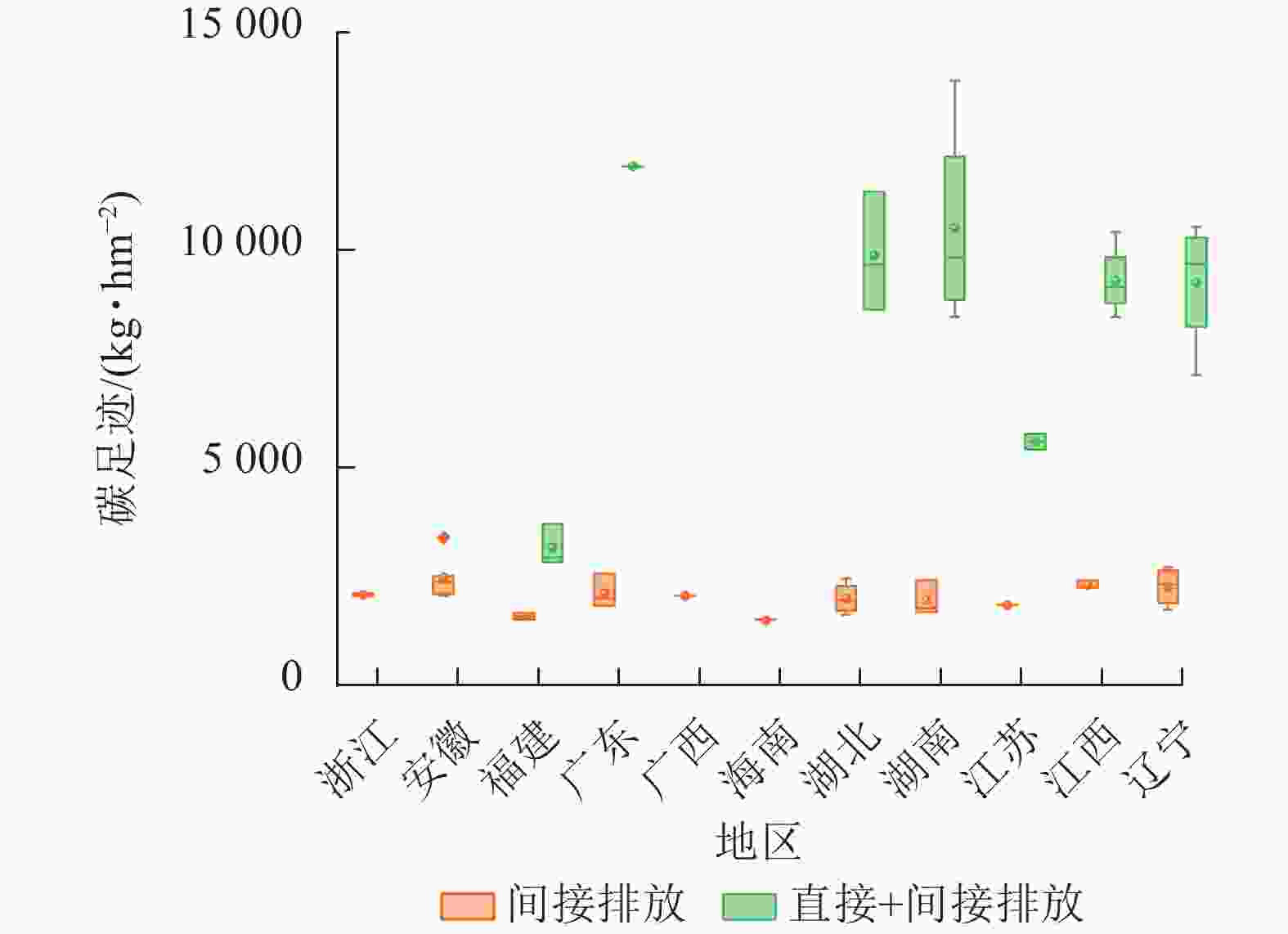 (kg·hm−2)核算边界 数据来源 参考文献 浙江 2004—2014,2020 2 056.0~2 114.6 2 085.3 间接排放 统计数据 [22,28] 安徽 2004—2014,2019,2020 2 056.0~3 397.6 2 485.1 间接排放 统计数据、调研 [22,28−29] 福建 2004—2014,2019,2020 1 500.0~1 657.4 1 578.7 间接排放 统计数据、试验 [22,28,30] 2019 2 827.3~3 706.9 3 154.8 直接+间接排放 试验 广东 2018,2020 1 815.2~2 555.0 2 119.9 间接排放 统计数据、试验 [20,22] 2018 11 921.0 11 921.0 直接+间接排放 试验 广西 2020 2 057.7 2 057.7 间接排放 统计数据 [22] 海南 2004—2014,2020 1 495.7~1 500.0 1 497.9 间接排放 统计数据 [22,28] 湖北 2020,2021 1 623.2~2 445.7 1 994.7 间接排放 统计数据、试验 [22,31] 2021 8 633.7~11 329.2 9 874.8 直接+间接排放 试验 湖南 2020,2023 1 675.3~2 415.9 1 955.2 间接排放 统计数据、调研 [22−24,32] 2015,2017 8 464.4~13 894.4 10 503.1 直接+间接排放 调研 江苏 2018 1 838.0 1 838.0 间接排放 试验、调研 [20,25] 2015,2018 5 414.0~5 777.0 5 595.5 直接+间接排放 江西 2018,2020,2023 2 246.0~2 415.9 2 305.4 间接排放 统计数据、调研 [20,22,24,32] 2017,2018 8 464.4~10 406.2 9 295.8 直接+间接排放 调研 辽宁 2022 1 723.0~2 712.0 2 263.3 间接排放 调研 [33] 2022 7 128.0~10 527.0 9 256.3 直接+间接排放 -