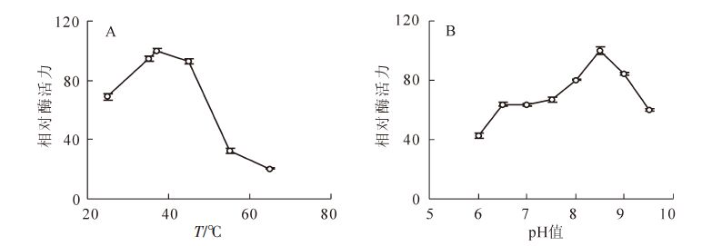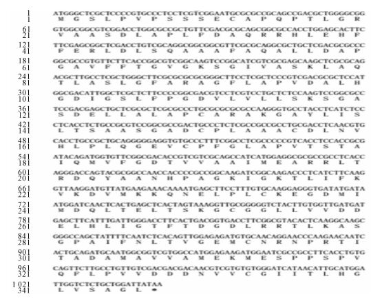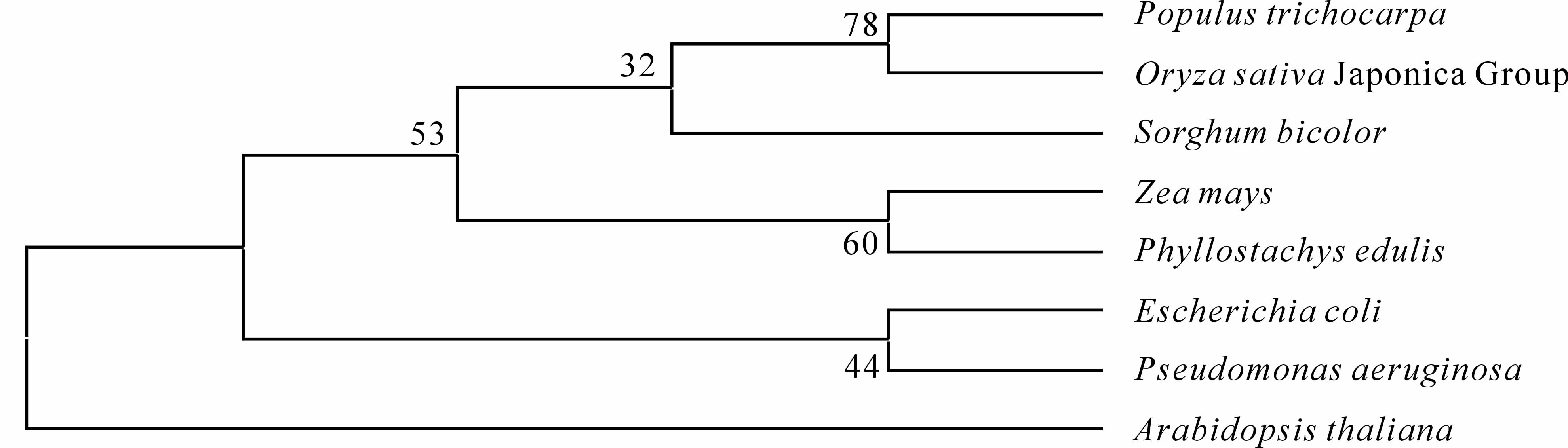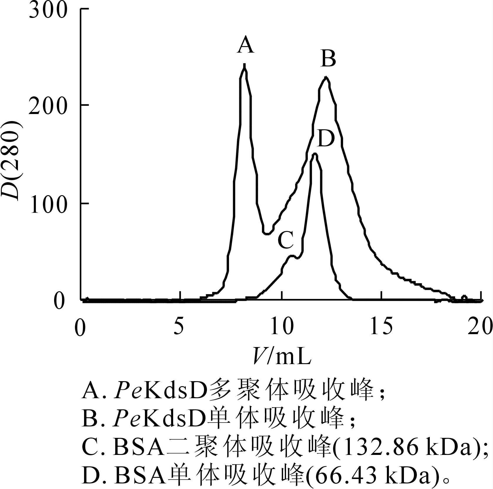 毛竹Phyllostachys edulis阿拉伯糖-5-磷酸异构酶(PeKdsD)是2-酮-3-脱氧辛糖酸(KDO)生物合成途径的第1个关键酶。采用逆转录实时聚合酶链式反应(qRT-PCR)克隆得到毛竹KdsD基因。该基因cDNA全长1 038 bp,编码346个氨基酸;对不同物种来源的KdsD氨基酸序列进行比对和系统进化树分析。结果表明:毛竹的KdsD与玉米Zea mays等植物来源的KdsD有很高的序列一致性,而与微生物来源的KdsD序列一致性较低。毛竹不同组织实时荧光定量聚合酶链式反应(qRT-PCR)结果表明:PeKdsD基因在叶中表达量远远高于其他组织。在大肠埃希菌Escherichia coli原核表达系统中获得了KdsD的可溶性高表达蛋白,将大量表达的重组蛋白经过Ni-NTA亲和层析和分子筛层析(SEC)进行纯化,发现KdsD在溶液(30 mmol·L-1三羟甲基氨基甲烷pH 8.0,200 mmol·L-1氯化钠)中以多种聚体的形式存在;酶学性质测定的结果表明:毛竹KdsD酶最适pH值为pH 8.5,最适作用温度为37℃。此结果为后期研究植物KdsD蛋白的结构与功能奠定了基础。图7参17