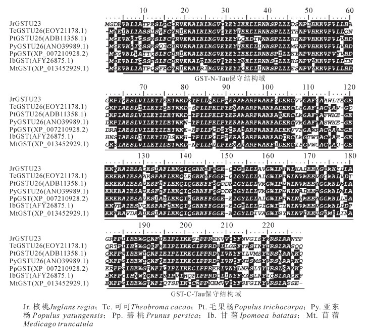 图 1JrGSTU23蛋白与其同源蛋白序列的氨基酸聚类分析