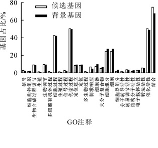 表 2INDEL关联的候选基因及其功能的GO富集分析