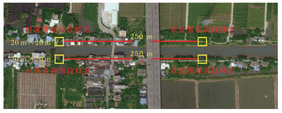 人类活动的影响体现在对河涌沿岸不同的土地利用方式上[18]。根据实地调查情况来看,河涌沿岸土地主要有农业、工业、村落等3种不同的土地利用方式,且3种类型的比例从大到小依次为村落用地、农业用地、工业用地。根据样方所处河段的用地类型,将样方划分为农业景观河段(共计60个)、工业景观河段(共计17个)和村落景观河段(共计107个)(图 2)。