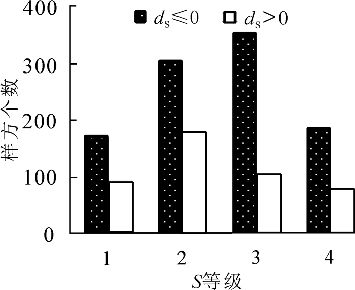 为便于分析,将S和dS进行分组(表 2)。其中S等级划分及描述参考黄良美等[12]的研究;dS等级划分参考文献[7,10,12-13],并通过专家打分的方式,最终划分为6个等级。