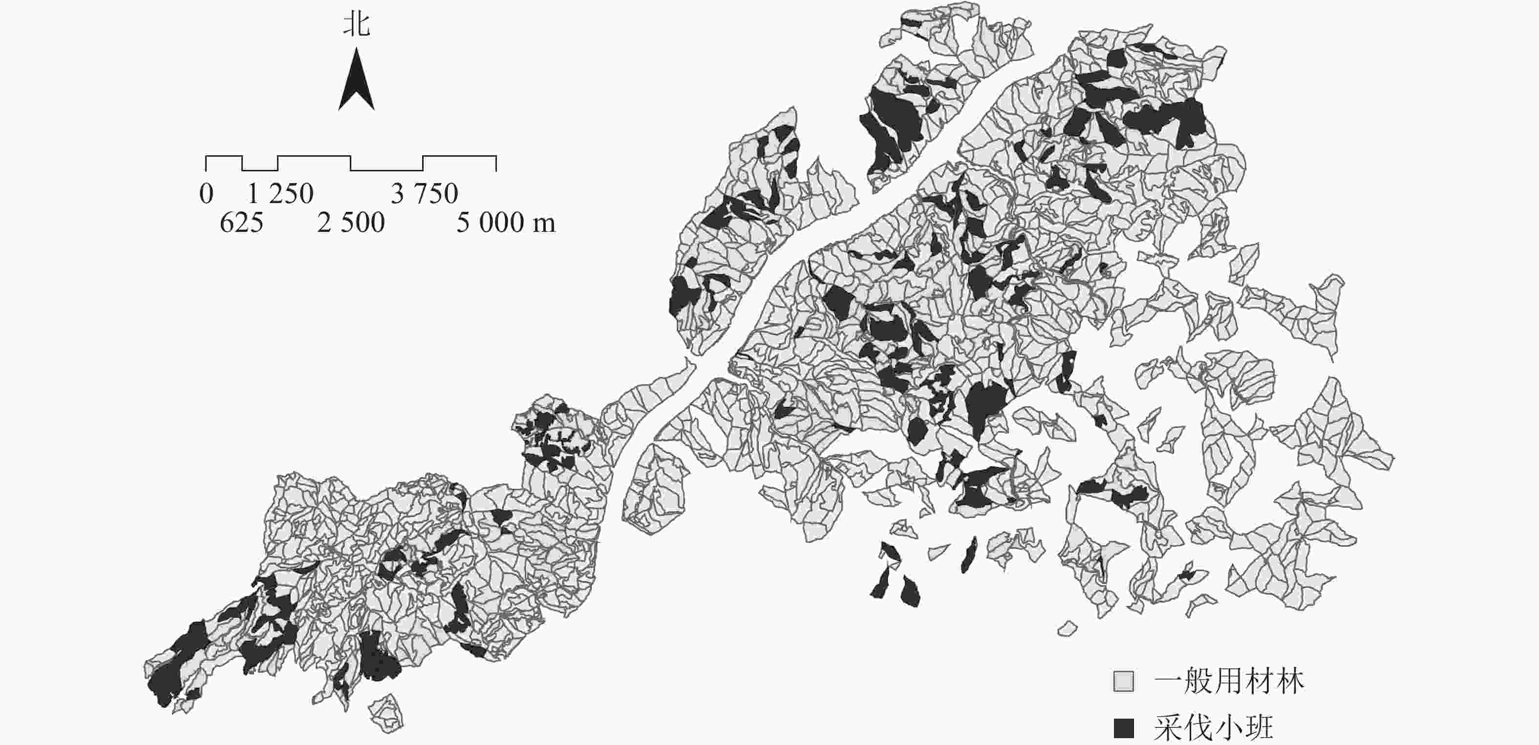 年伐量的计算是森林经理的一项重要工作,也是森林经营方案编制的重要内容[1]。科学合理的森林年伐量对于优化森林结构、提高森林质量,最终实现森林可持续经营具有重要意义。年伐量计算的传统方法包括面积轮伐法、成熟度法、第1林龄公式、平均生长量法等[2],只有立地均匀且林分组成接近法正林时,计算结果才比较客观可靠[3]。而现实中,森林在长期经营过程中,受到人为干预和自然更新等多方面因素,龄组结构往往是不均匀的,此时利用传统方法计算年伐量,结果往往差异较大,需要借助主观分析,选择较为合适的结果。公式法受制于森林复杂的龄组结构,易忽视林分的生长和演化,计算结果不够客观,主观性较强。FSOS采用模拟退火算法安排森林经营作业,通过参数协调控制多项资源,充分考虑森林复杂的环境和林分生长,实现森林多目标长期可持续经营。该模型能使森林生态系统各功能在最自然的状态下实现最佳目标,近期和长远利益相结合,充分发挥森林的生态、经济和社会效益,并且已应用于加拿大不列颠哥伦比亚省和中国长白山地区,取得良好成效[4]。在计算采伐量时,该模型能充分考虑森林的龄组结构、树种组成和林分生长演化规律,通过模拟退火算法寻找最优解,计算结果不受主观影响,准确可靠。本研究以浙江省杭州市建德市林业总场为研究对象,基于森林模拟优化模型(forest simulation and optimization system,FSOS),进行用材林主伐方案的合理年伐量测算研究,以期利用计算机模型解决传统方法的弊端。