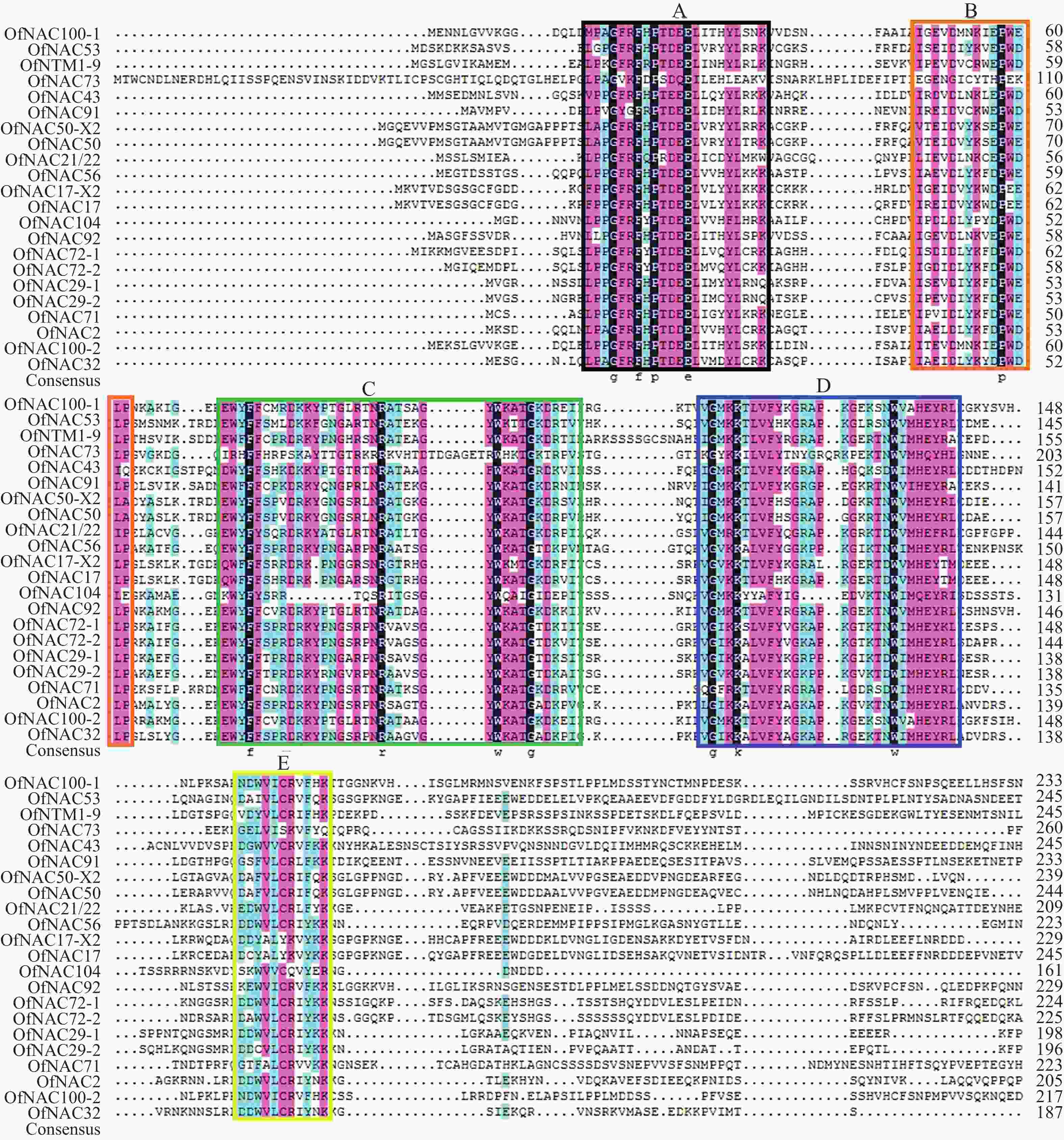 Figure 3.Evolution analysis of 22 OfNAC transcription factors and analysis of conserved motif