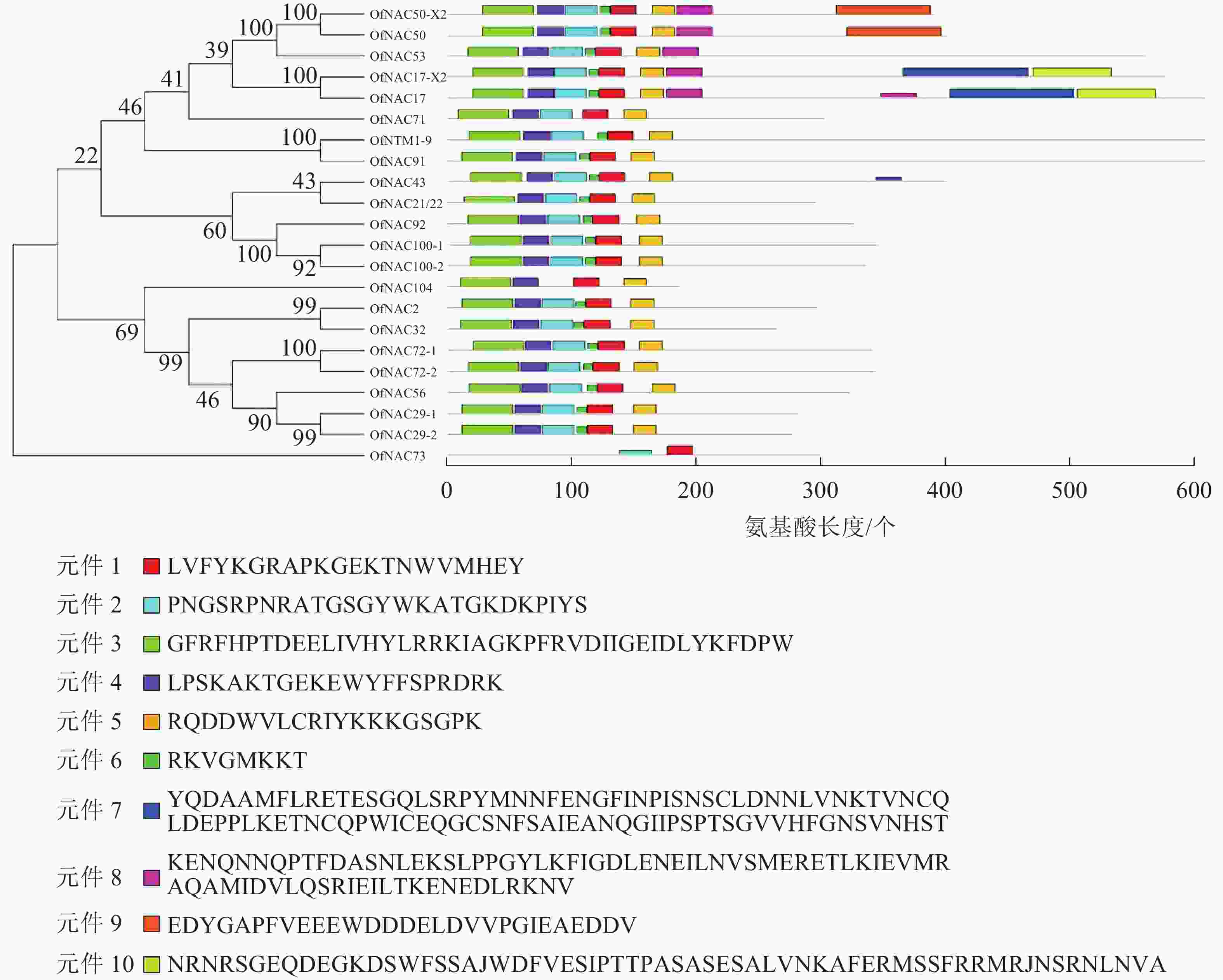 图 3桂花OfNAC转录因子进化分析及保守基序分析