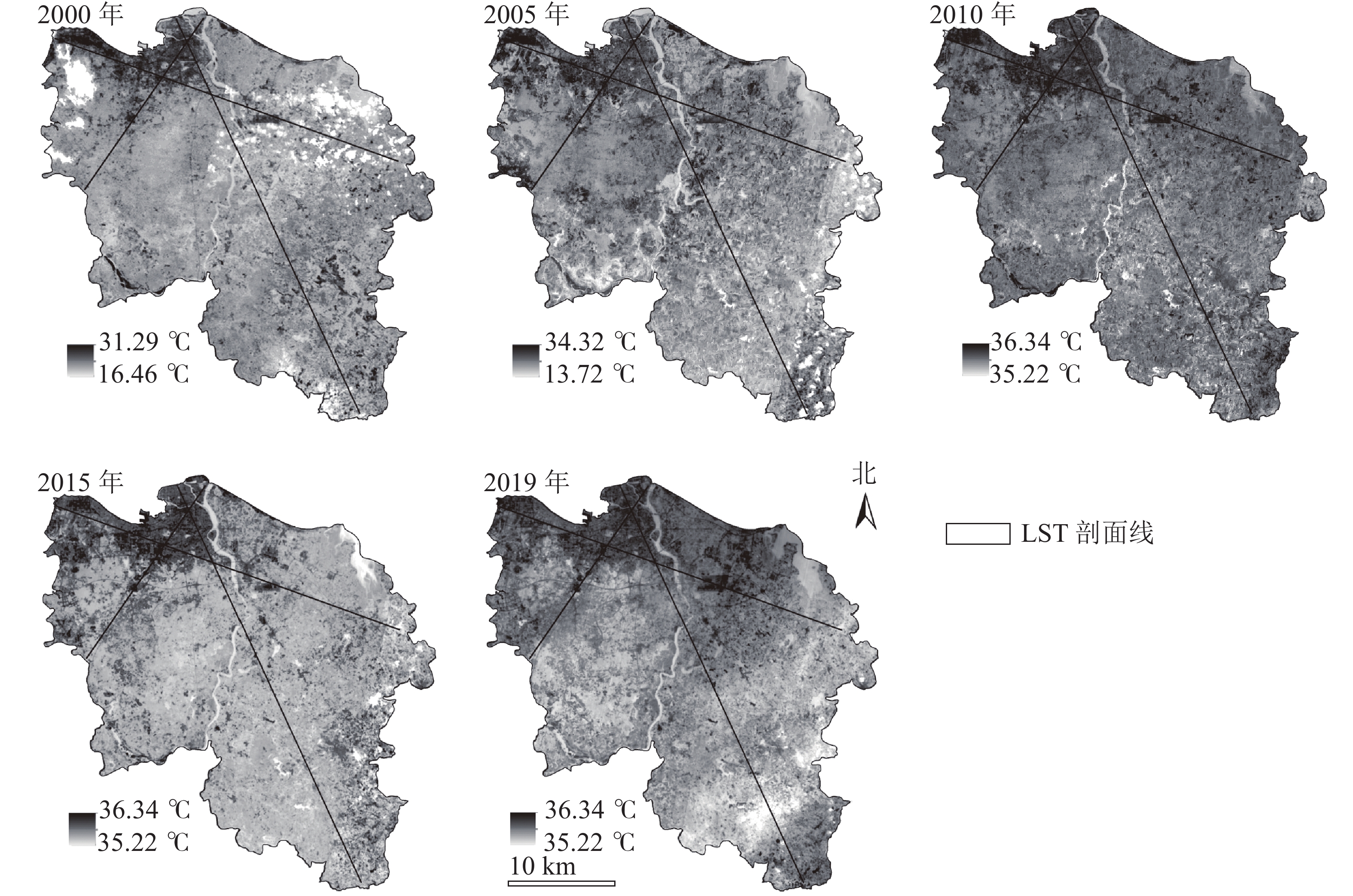 基于ArcGIS平台的3D Analyst工具,绘制地表温度剖面图。分析剖面线的城市热岛时空分异规律,推断城市热岛在空间方向上的发展态势;结合地物特征,分析“山脊”“谷”“高原”“盆地”和“高峰”及其波动变化的原因[18],判读热岛景观格局的时空异质性。