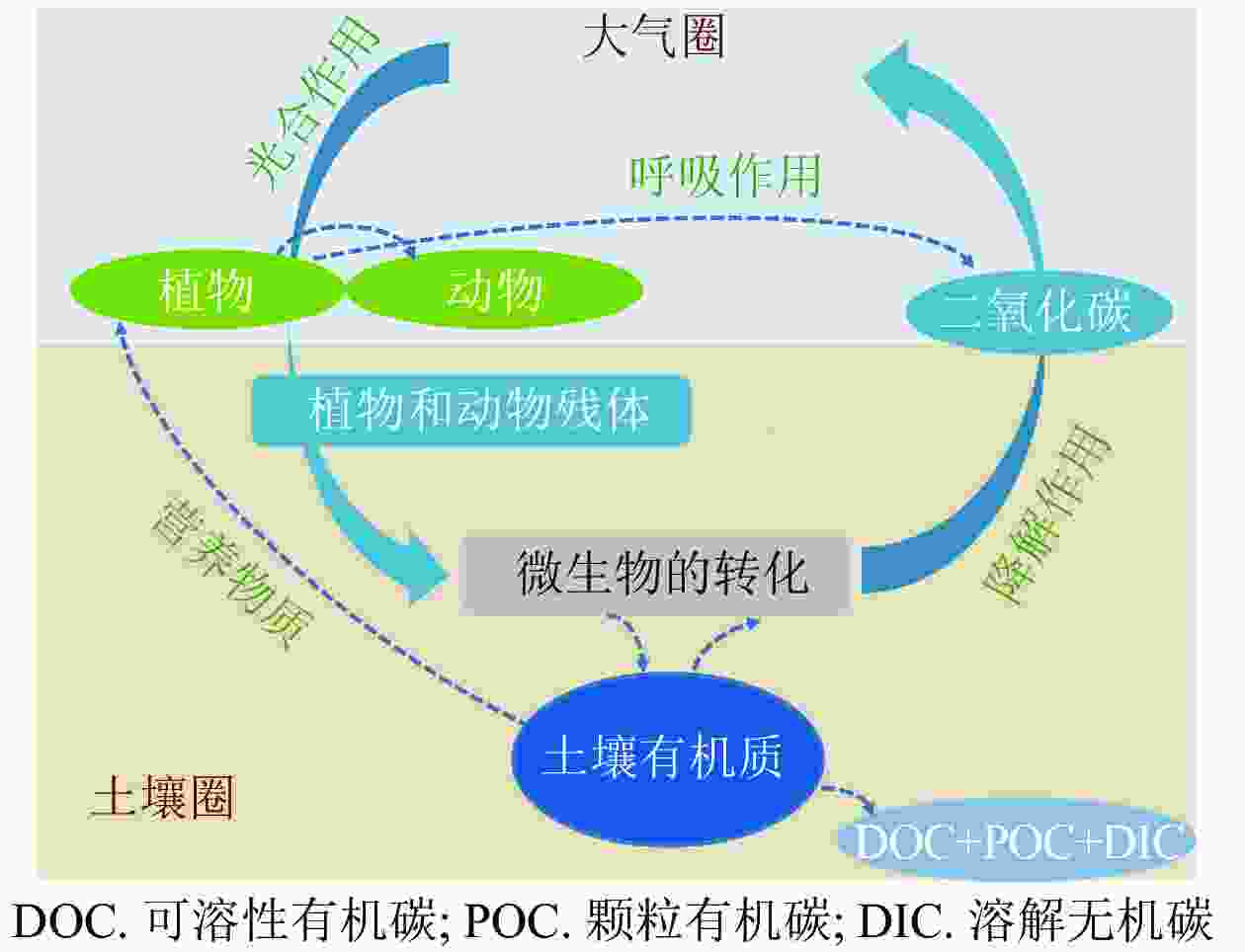 土壤有机质(soil organic matter, SOM)是指存留于土壤中的动植物残体、微生物体、根系分泌物和一些高度稳定的腐殖质等多种有机组分。SOM可通过保持基本的营养成分和水分以及改变土壤中关键的物理、化学和生物过程等途径维持植物、动物和微生物的生命,并在不断变化的环境中维持土壤生态系统的稳定性[1-2]。SOM矿化可直接提供植物生长所需的氮、磷等营养元素;另一方面,SOM可为土壤中的固氮菌提供其固氮所需要的能量,间接影响植物生长所需元素的可利用性[3-4]。SOM可改变土壤的物理条件、缓冲能力和离子交换能力,SOM损失会使土壤出现硬化、紧实和结块等现象,进而影响土壤的通气性、持水量和渗透能力;土壤缓冲能力和交换能力会随着腐殖质的增加而逐渐增强,研究发现[5]:土壤20%~70%的交换能力都是由土壤中的胶状腐殖质维持的。此外,SOM作为异养微生物所需的能量或底物来源,直接影响土壤微生物的数量和活性[6-7]。因此,SOM在土壤的物理、化学和生物转化过程中扮演着重要的角色。土壤是陆地生态系统最大的碳库,土壤有机碳总量达1 550亿t,作为土壤有机碳的最大来源,SOM在恢复和建立碳平衡、土壤碳和氮元素循环、环境可持续性和气候条件等方面起着至关重要的作用[8-9]。SOM积累和流失的速度直接影响大气中二氧化碳浓度,进而影响全球气候变化。SOM中碳的积累和流失通常通过2种方法进行估算,一种是直接通过测定有机质含量的变化计算,另外一种是根据放射性碳测定的有机物年龄推断,但对SOM中碳的估算高度依赖观测时间的范围[10]。在数月到数年内,新鲜植物凋落物分解过程中的质量损失速率接近于凋落物添加到土壤中的速率,因此,凋落物分解是土壤碳损失的主要途径;而在数千年的时间尺度上,碳储量的变化不能被直接观测到,通常是通过计算基岩,相似成土因素(基岩物质、气候和植被)下的风化时间来估算,因此土壤碳的数量和年龄受与风化有关的矿物变化控制。据估算,在过去的12 000 a里,人类的土地利用导致全球表层2 m土层的土壤流失了133 Pg碳[10-12]。认识控制SOM中碳稳定和释放的机制,探明近几十年到几个世纪内土壤有机碳储量的变化,对于预测全球气候变化的影响和制定提高土壤碳固存的管理策略具有重要意义[11,13]。