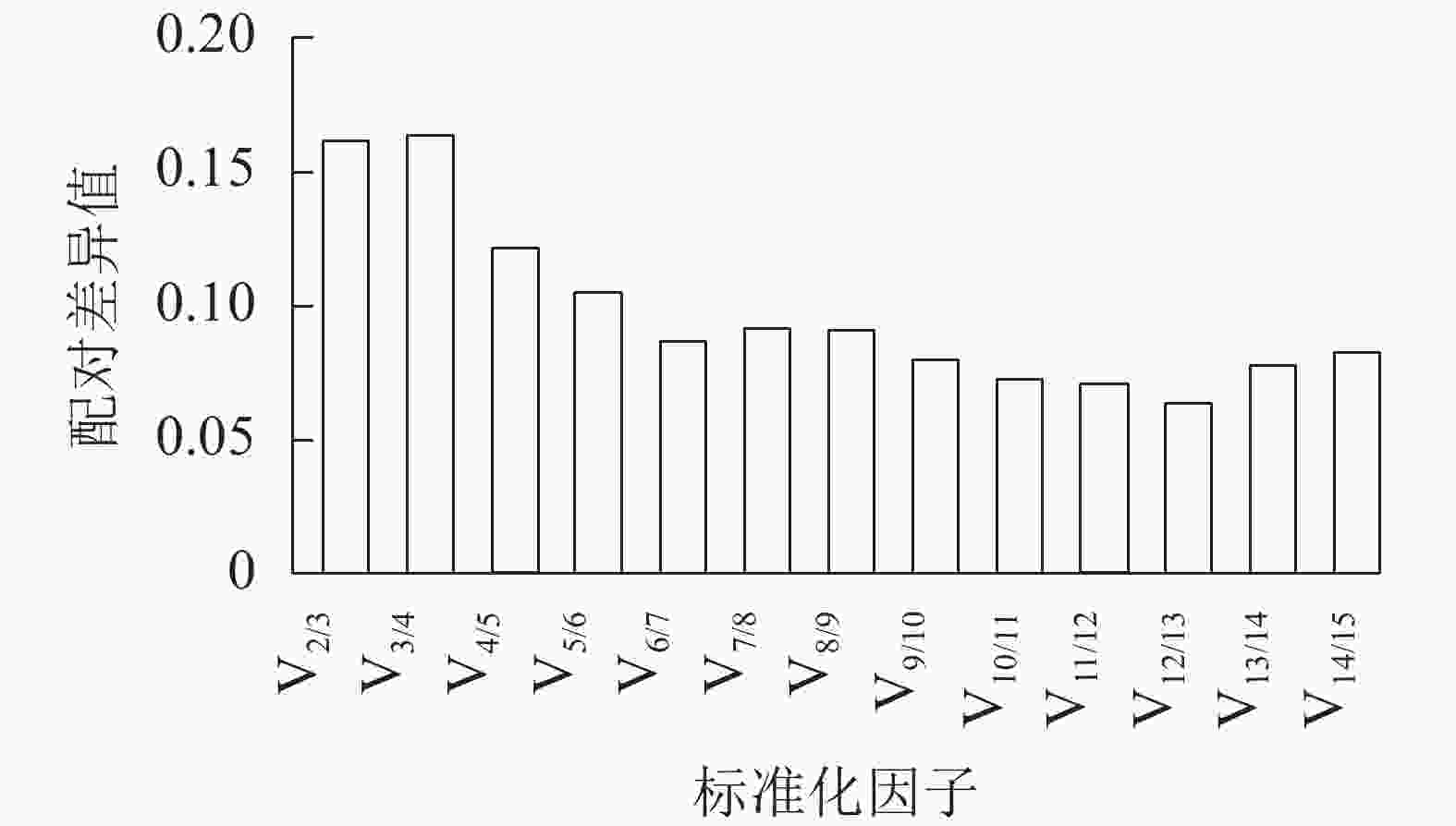 最后通过几何平均数对这4种方法的分析结果进行综合性排序(表5)。根据表5的排名与geNorm推荐的内参基因数目,筛选CNNM、GPR107、EF1-α、G6PD-2作为标准化山麦冬果实RT-qPCR的最优内参组合,PDP为最差内参基因,通过4种算法得出的结果也与最初候选内参基因原始Ct值分布箱线图分析结果一致。