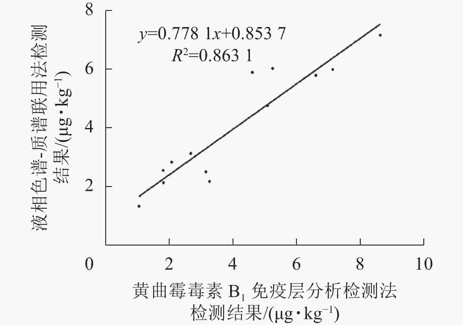 采用免疫层析检测法、商品化检测试剂盒和LC-MS/MS平行检测天然AFB1阳性样本,并对检测结果的一致性进行分析。