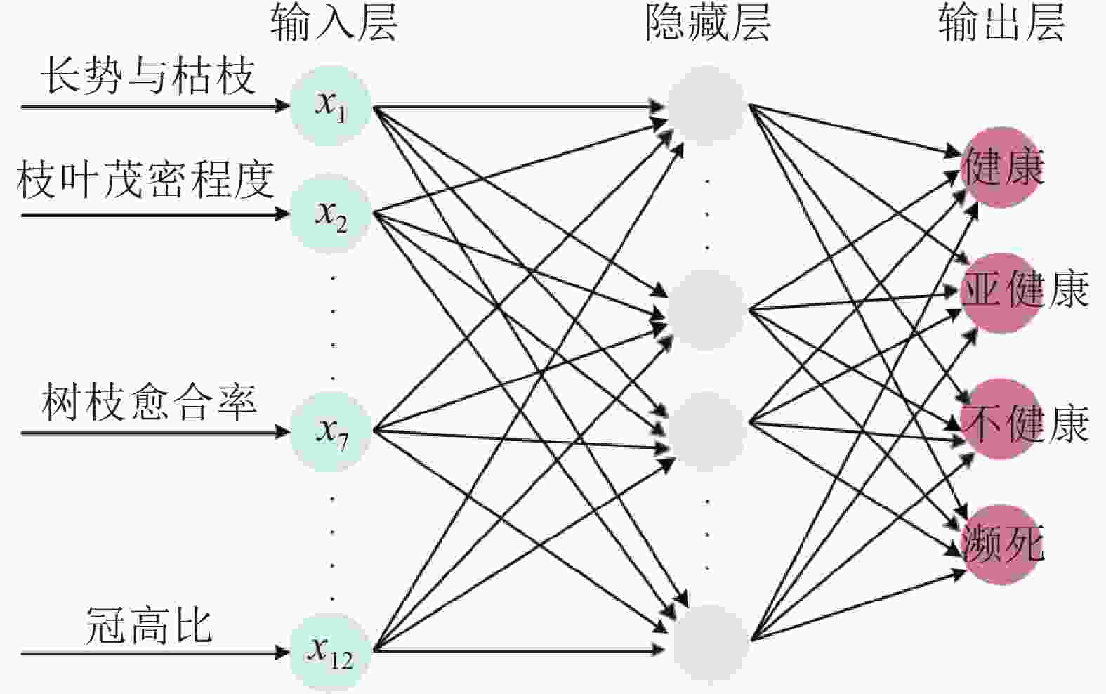 [1] 周姝雯, 高菲, 马克明. 基于ENVI-met模型的北京市典型道路行道树树种优化研究[J]. 中国园林, 2020,36(6): 141 − 144.ZHOU Shuwen, GAO Fei, MA Keming. Research on species optimization of typical road trees in Beijing based on ENVI-met [J].Chin Landscape Archit, 2020,36(6): 141 − 144. [2] 汪瑛. 北京市行道树结构分析与健康评价[D]. 北京: 中国林业科学研究院, 2011.WANG Ying.The Structural Analysis and Health Assessment of Roadside Trees in Beijing[D]. Beijing: Chinese Academy of Forestry, 2011. [3] CHOW W T L, ROTH M. Temporal dynamics of the urban heat island of Singapore [J].Int J Climatol, 2006,26(15): 2243 − 2260. [4] 潘辉, 刘晓华, 黄石德, 等. 城市行道树对道路空间CO浓度的影响[J]. 福建林学院学报, 2008,28(4): 356 − 360.PAN Hui, LIU Xiaohua, HUANG Shide,et al. Effects of urban forest trees on CO concentration in street space [J].J Fujian Coll For, 2008,28(4): 356 − 360. [5] FERNÁNDEZ-JURICIC E. Avifaunal use of wooded streets in an urban landscape [J].Conserv Biol, 2000,14(2): 513 − 521. [6] 邵鹏. 北京城市核心区国槐行道树健康评价研究[D]. 北京: 北京林业大学, 2020.SHAO Peng.A Study on Health Assessment of Sophora japonica Street Trees in Beijing Urban Core Area[D]. Beijing: Beijing Forestry University, 2020. [7] 翁殊斐, 黎彩敏, 庞瑞君. 用层次分析法构建园林树木健康评价体系[J]. 西北林学院学报, 2009,24(1): 177 − 181.WENG Shufei, LI Caimin, PANG Ruijun. Establishment of landscaping tree health assessment model using analytic hierarchy process [J].J Northwest For Univ, 2009,24(1): 177 − 181. [8] 游惠明, 游秀花, 陈笑玲, 等. 福州市行道树种综合评价与分级选择[J]. 中国城市林业, 2009,7(1): 15 − 17.YOU Huiming, YOU Xiuhua, CHEN Xiaoling,et al. Integrated evaluation and selection of street trees species in Fuzhou City [J].J Chin Urban For, 2009,7(1): 15 − 17. [9] 罗贵斌. 汉中市中心城区常绿行道树综合评价[J]. 西北林学院学报, 2016,31(2): 302 − 308.LUO Guibin. Comprehensive evaluation of the evergreen streettrees planted in the downtown of Hanzhong city [J].J Northwest For Univ, 2016,31(2): 302 − 308. [10] 李佳慧, 彭祚登, 刘勇, 等. 北京市首都功能核心区国槐健康评价及其影响因素研究[J]. 西北农林科技大学学报(自然科学版), 2021,49(1): 64 − 73.LI Jiahui, PENG Zuodeng, LIU Yong,et al. Health evaluation and influencing factors ofSophora japonicain the capital functional core area of Beijing [J].J Northwest A&F Univ Nat Sci Ed, 2021,49(1): 64 − 73. [11] 杜甲宝, 潘盼, 杨芳绒. 主成分分析法在郑州市行道树综合性能评价研究中的应用[J]. 西北林学院学报, 2009,24(3): 190 − 193.DU Jiabao, PAN Pan, YANG Fangrong. Application of principal component analysis method in the comprehensive function assessment of the street trees in Zhengzhou [J].J Northwest For Univ, 2009,24(3): 190 − 193. [12] 郄光发, 彭镇华, 王成. 北京城区银杏行道树生长现状与健康状况研究[J]. 林业科学研究, 2013,26(4): 511 − 515.QIE Guangfa, PENG Zhenhua, WANG Cheng. Growth and health status ofGinkgo bilobain Beijing urban street area [J].Res For, 2013,26(4): 511 − 515. [13] 莫训强, 闫维, 陈小奎, 等. 活力度分级法在天津空港经济区行道树健康评价中的应用[J]. 国土与自然资源研究, 2012(1): 88 − 90.MO Xunqiang, YAN Wei, CHEN Xiaokui,et al. Application of street trees’ vigorous degree in greening management: a case of Tianjin airport economic area [J].Territ Nat Resour Study, 2012(1): 88 − 90. [14] 马志林, 陈丽华, 于显威, 等. 北京西山地区不同林分健康状况比较研究[J]. 生态环境学报, 2010,19(3): 646 − 651.MA Zhilin, CHEN Lihua, YU Xianwei,et al. Study on health assessment and comparison of different tree species in the west-mountains area, Beijing [J].Ecol Environ Sci, 2010,19(3): 646 − 651. [15] 姬文元, 邢韶华, 郭宁, 等. 川西米亚罗林区云冷杉林健康状况评价[J]. 林业科学, 2009,45(3): 13 − 18.JI Wenyuan, XING Shaohua, GUO Ning,et al. Health evaluation on spruce and fir forests in Miyaluo of the western Sichuan [J].Sci Silv Sin, 2009,45(3): 13 − 18. [16] 朱宇, 刘兆刚, 金光泽. 大兴安岭天然落叶松林单木健康评价[J]. 应用生态学报, 2013,24(5): 1320 − 1328.ZHU Yu, LIU Zhaogang, JIN Guangze. Health assessment of individual trees in naturalLarix gmeliniiforest in Great Xing’ an mountains of China [J].Chin J Appl Ecol, 2013,24(5): 1320 − 1328. [17] 张楠, 董丽, 郝培尧, 等. 北京市中心城区行道树结构的研究[J]. 中南林业科技大学学报, 2014,34(5): 101 − 106.ZHANG Nan, DONG Li, HAO Peiyao,et al. Study on structure of street trees in central districts of Beijing [J].J Cent South Univ For Technol, 2014,34(5): 101 − 106. [18] 余韵. 北京城市核心区白蜡行道树健康评价研究[D]. 北京: 北京林业大学, 2020.YU Yun.A Study on Health Assessment of Roadside Trees Fraxinus ssp. in Core Area of Beijing[D]. Beijing: Beijing Forestry University, 2020. [19] 北京市市场监督管理局. 城市树木健康诊断技术规程: DB11/T 1692—2019 [S]. 北京: 中国标准出版社, 2019.Beijing Municipal Bureau of Market Supervision and Administration.Technical Regulations for Health Diagnosis of Urban Trees:DB11/T1692−2019 [S]. Beijing: China Quality and Standards Publishing & Media Co. , Ltd. [20] HAN Xin, WEI Zheng, ZHANG Baozhong,et al.Crop evapotranspiration prediction by considering dynamic change of crop coefficient and the precipitation effect in back-propagation neural network model[J/OL].J Hydrol, 2021,596(3/4): 126104[2021-12-10]. doi: 10.1016/j.jhydrol.2021.126104. [21] 雷廷, 贾军元, 田福金, 等. 基于BP神经网络预测岩石导热系数[J]. 世界地质, 2021,40(1): 131 − 139.LEI Ting, JIA Junyuan, TIAN Fujin,et al. Prediction 
