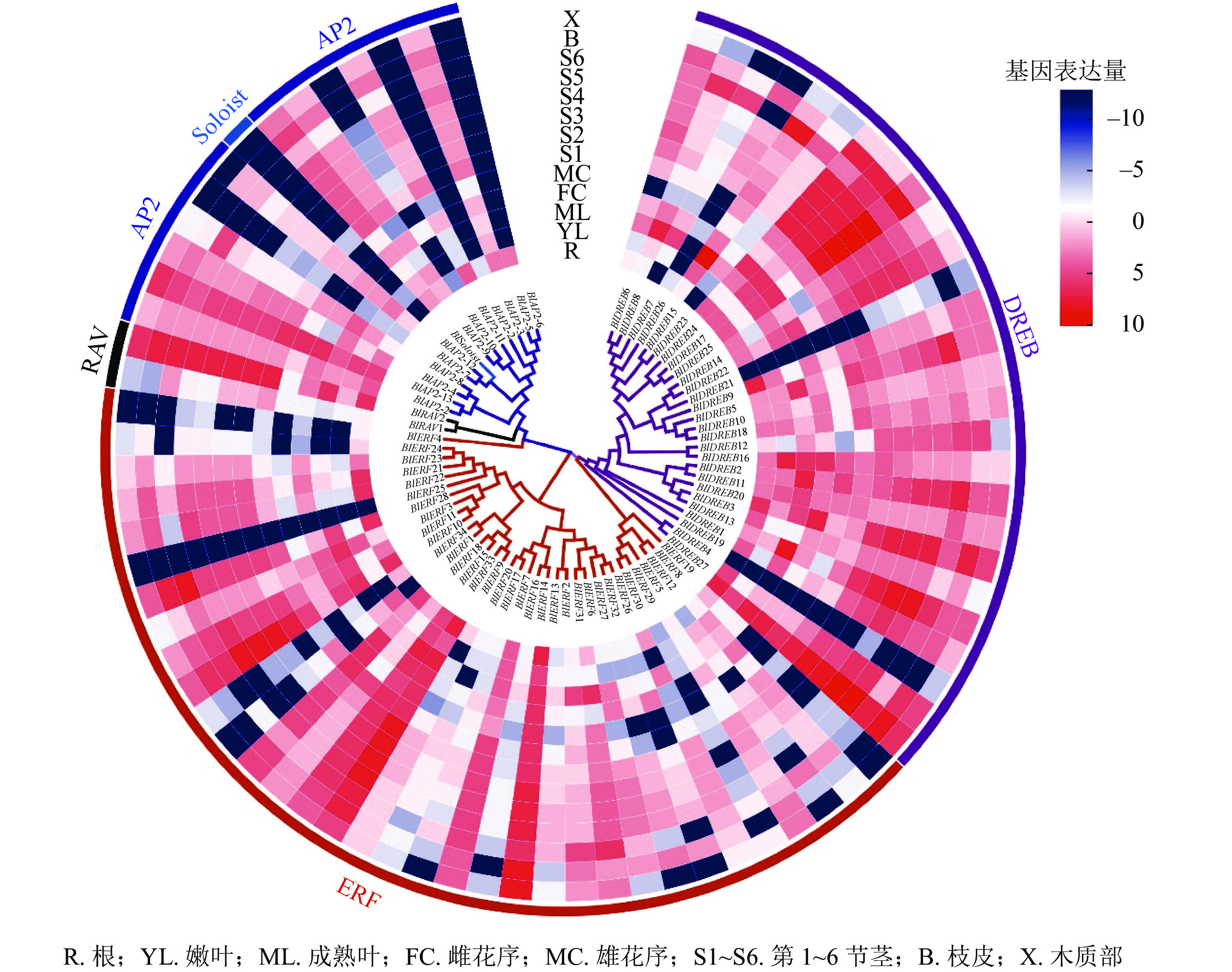 图 5光皮桦AP2/ERF基因家族在不同组织器官中的表达