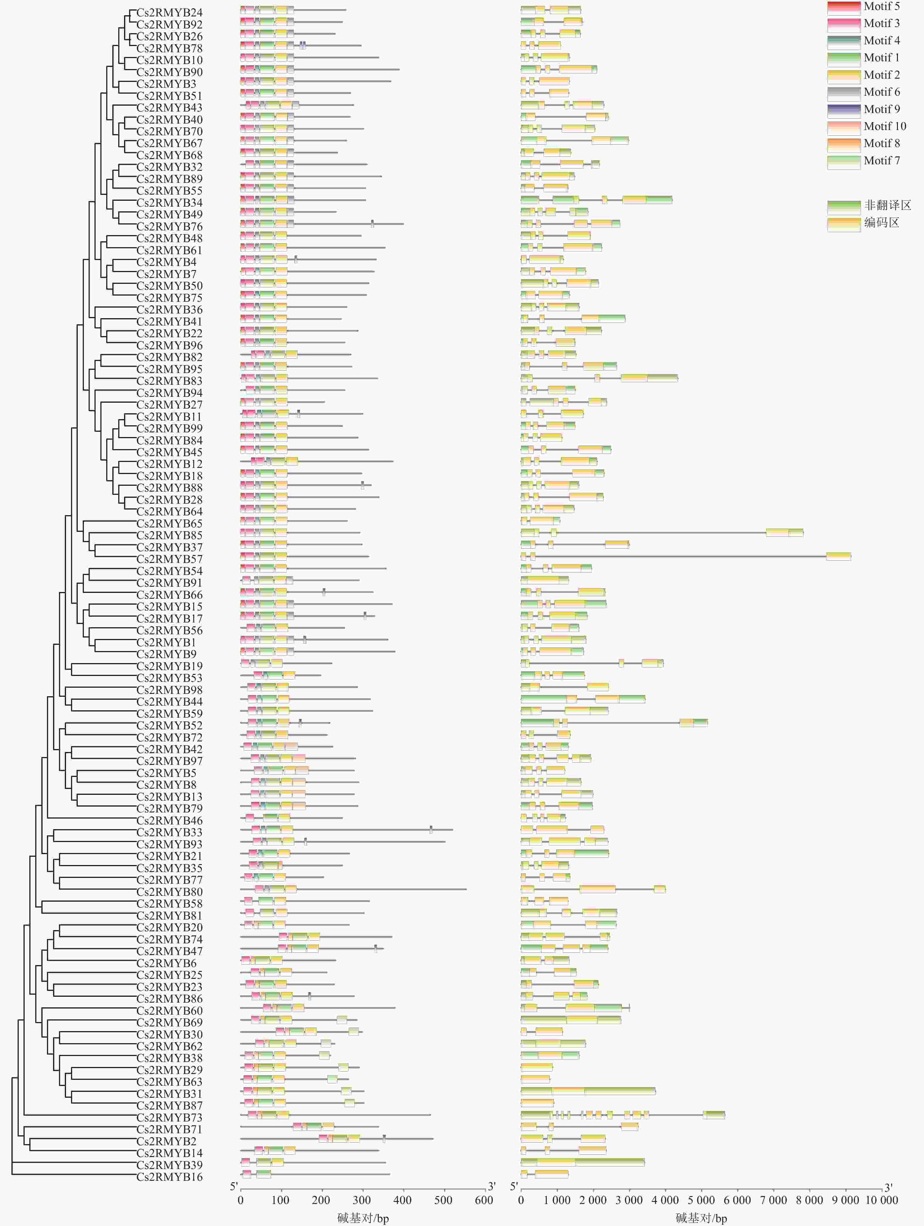 图 4黄瓜R2R3-MYB亚家族蛋白保守基序和基因结构