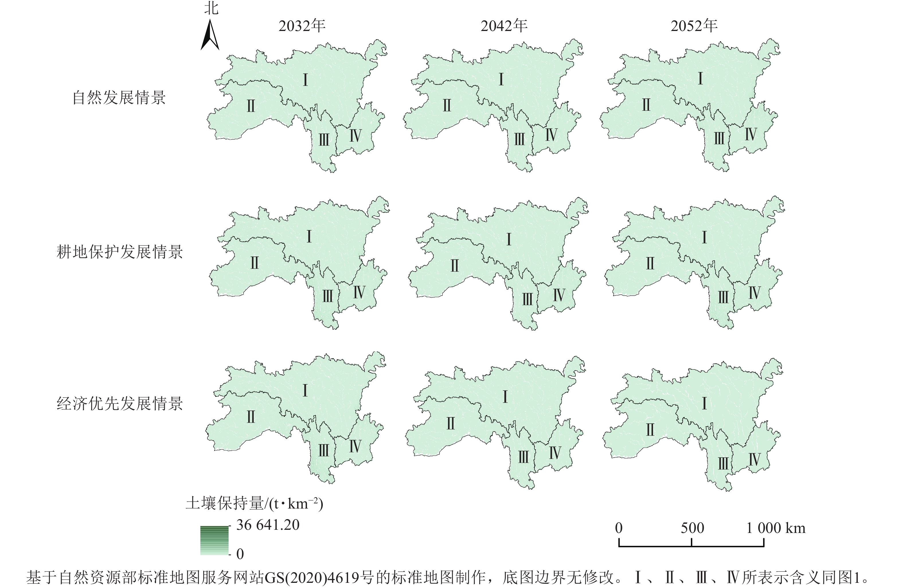 图 92032—2052年西南高山峡谷区不同情景下的土壤保持量示意图