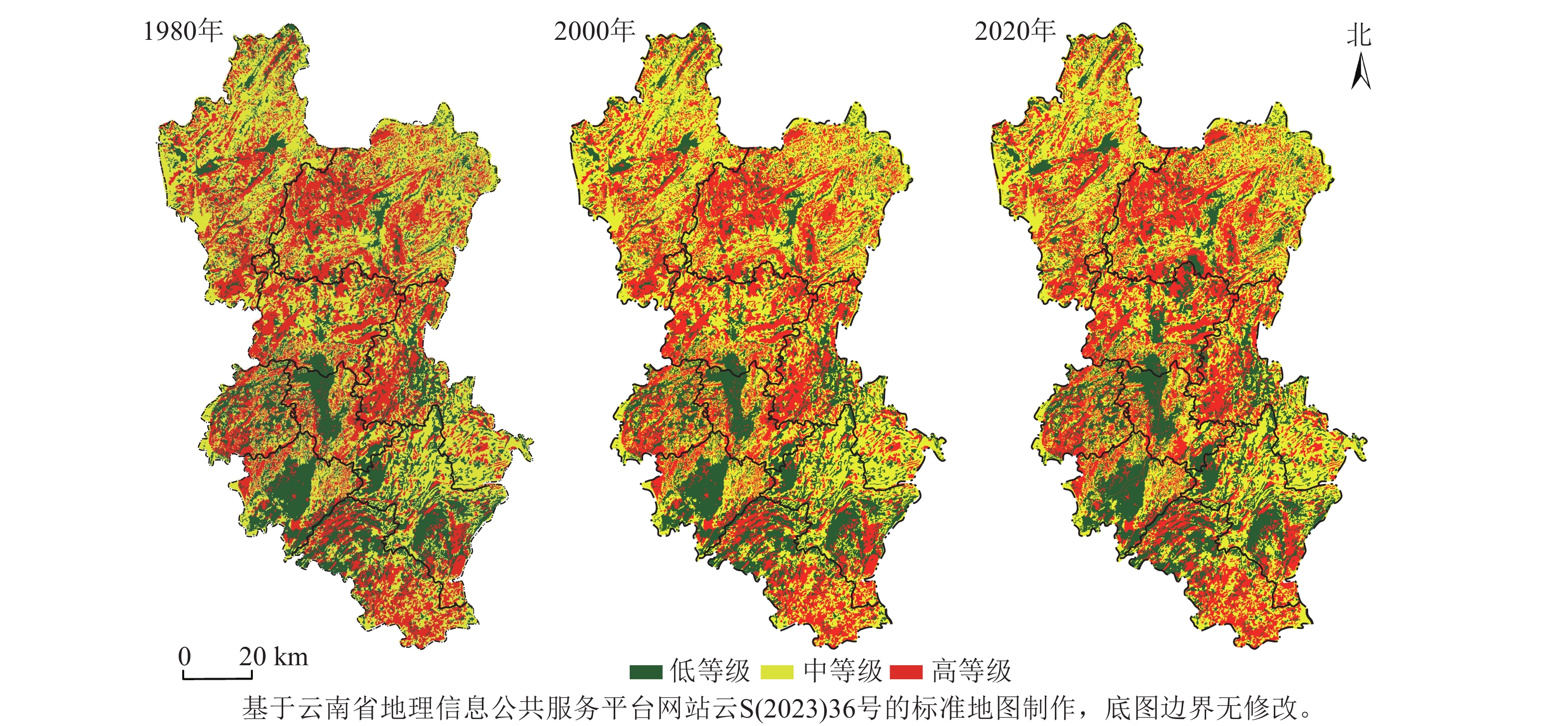 生境等级 1980年 2000年 2020年