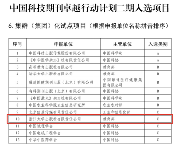 2024年11月15日,中国科技期刊卓越行动计划二期(2024—2028年)项目入选结果公示,浙江大学出版社有限责任公司AcadeMax (无际学术)学术出版与知识服务平台,成功入选中国科技期刊卓越行动计划二期集群(集团)化试点项目。《浙江农林大学学报》为该集群成员单位。